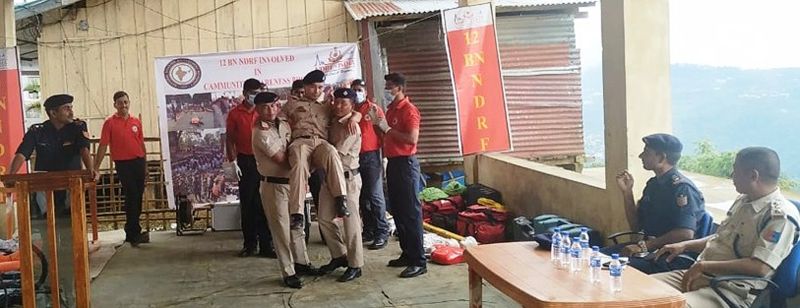 Personnel conduct demonstration during the familiarization exercise on disaster management held in Longleng from August 26 to 28. (DIPR Photo)