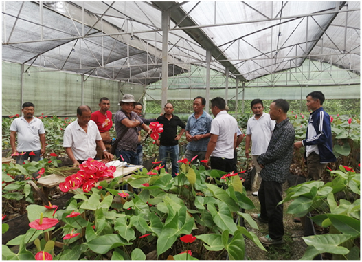 ATMA Zunheboto comprising of 10 farmers from different blocks visited District Horticulture Farm & Playhouse on August 21. Training on protection of nursery plants at the playhouse, cultivation of Anthurium