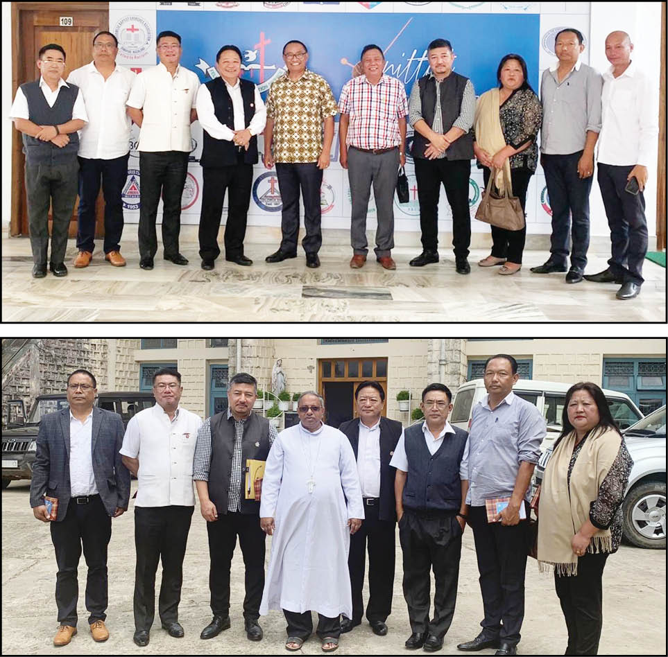 Senior members of the NDPP and the BJP, the principle constituents of People’s Democratic Alliance (PDA) in Nagaland during their meeting with the Nagaland Baptist Church Council (NBCC) members (top) and the