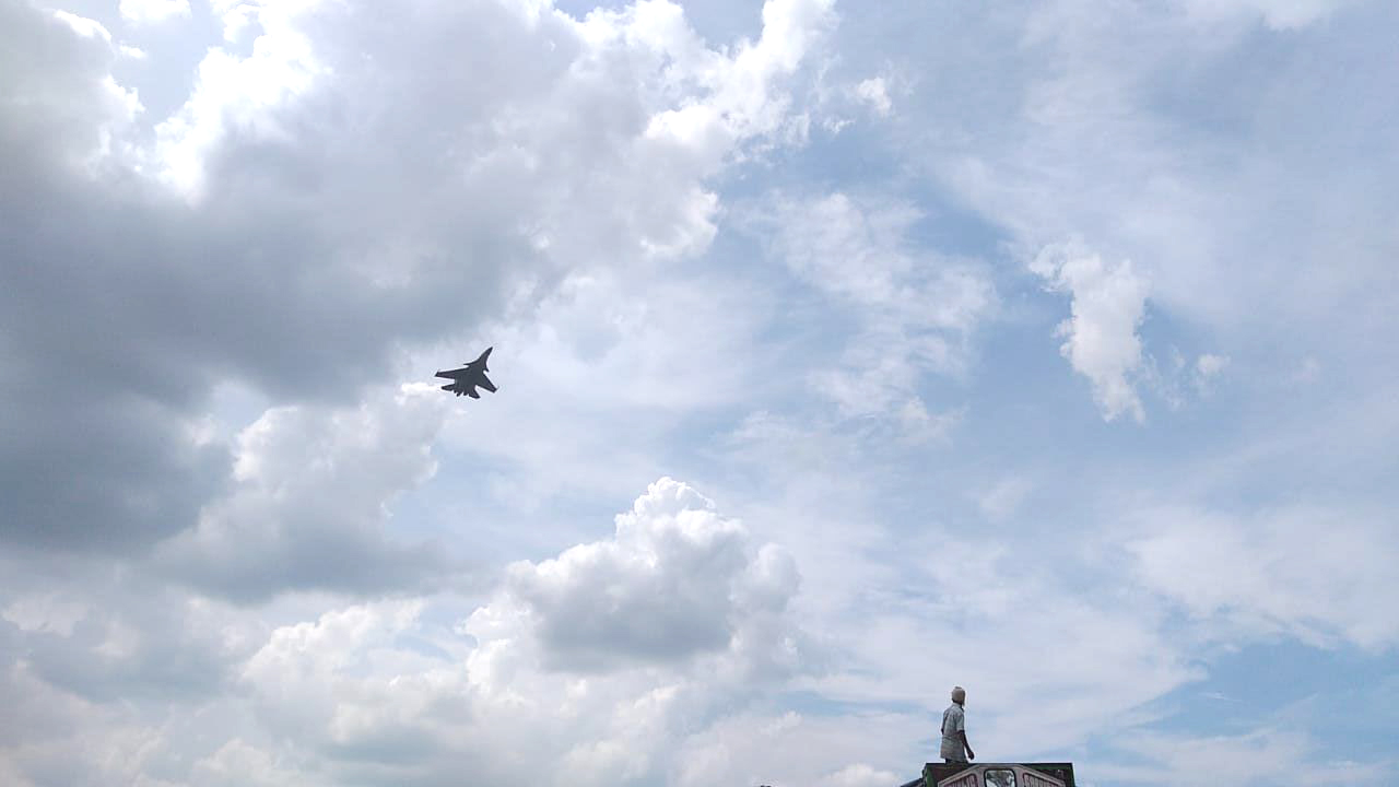 A picture of several, which circulated on social media groups, taken by locals of a Su-30MKI silhouetted against a cloudy, grey Dimapur sky on August 26.