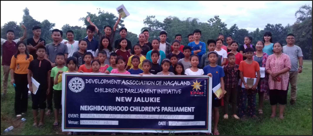 Participants and organizers of the Children’s Parliament Initiative in Nagaland held at New Jalukie Village Panchayat Hall on July 25. (Photo Courtesy: NJSU)