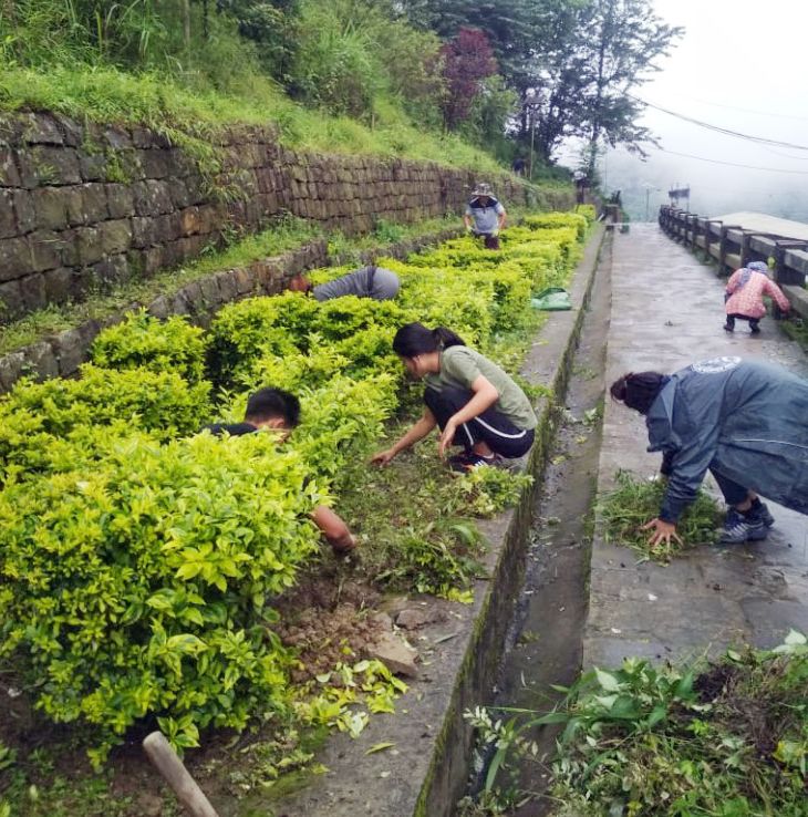 Volunteers take part in the social work and beautification drive at the Box Cutting area of Kohima Town on July 27.