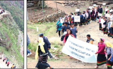 As nearly 3000 people, mostly women, walked along the steep hills of Sihai Khunou village from neighbouring Khamasom village in Ukhrul district (Manipur) on Tues