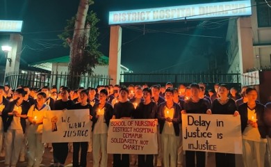 Student Nurses’ Association School of Nursing District Hospital Dimapur Unit held a candle light vigil on February 27 evening to express solidarity following the assaulted case of second year GNM student at D