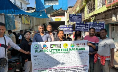 Morung Express News Dimapur | December 16In order to promote sustainable practices, Lakshay NGO and Eco Warriors organised a signature campaign at New Market, Dimapur, on December 15, urging citizens to ta