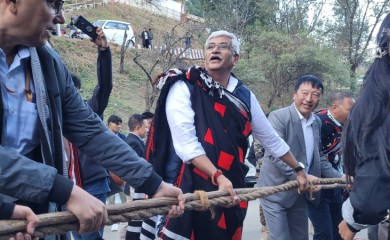 Our CorrespondentKohima | December 3Union Minister For Culture & Tourism, Gajendra Singh Shekhawat today joined the traditional log drum pulling programme of Tikhir Nagas as part of the 25th Hornbill Festiv