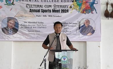 Kohima, October 4 (MExN): The Oriental College Kohima today kicked off its cultural cum literary & annual sports meet 2024 with Dr. Hovithal Sothu, Project Director, Task Force for Music and Arts (TaFMA) as