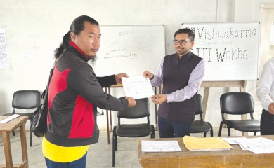 Morung Express NewsWokha | August 12Vineet Kumar IAS, Wokha Deputy Commissioner distributed certificates to 45 trainees who completed the Basic Skilling Training in Carpenter (Suthar/Badhai) under the PM Vishwa