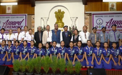 NSBSG award ceremony held at Raj Bhavan, Kohima KOHIMA, AUGUST 9 (MExN): The Nagaland State Bharat Scouts and Guides award ceremony was held at Dr Imkongliba Ao Hall, Raj Bhavan, Kohima on August 9. S