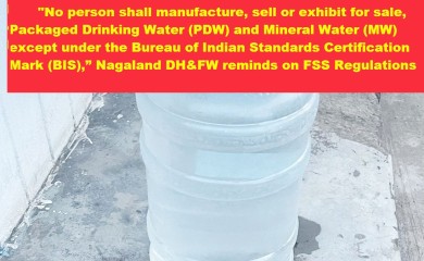 Says BIS License mandatory irrespective of annual turnoverKohima, July 25 (MExN): The Department of Health & Family Welfare (DH&FW) has reiterated that many Packaged Drinking Water (PDW) manufacturers/s