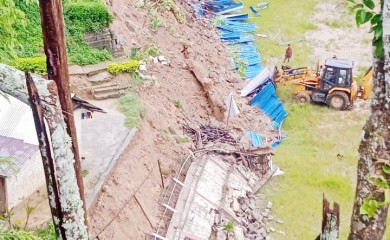 Morung Express NewsWokha | July 23A major landslide damaged a football ground at Lakhuti Village under 39 A/C, Wokha District after the retaining wall and gallery collapsed. The said football ground was constru