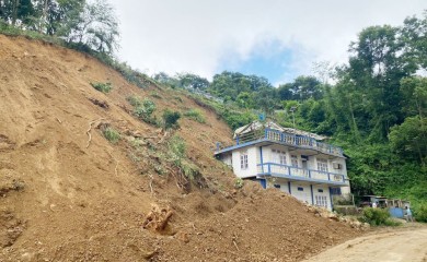 Morung Express NewsWokha | July 18A major landslide has hit Wokha Village 'B' Khel near APMC Wokha Village. The mudslide completely destroyed a building owned by Mhonyamo Murry and caused minor damage to the re