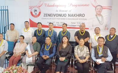 Our CorrespondentKohima | July 13The thanksgiving ceremony of ULB elected councillor Zeneivonuo Nakhro was held at Nagabazar Panchayat Hall, Kohima on July 13.Nakhro was elected to Kohima Municipal Council (KMC
