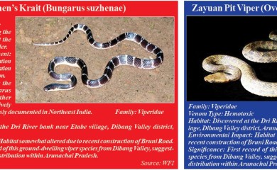 Dehradun, June 29 (MExN): Two new venomous snake species have been reported from Arunachal Pradesh and Nagaland, adding to the biodiversity of the two states, according to a study published in the Journal of Th