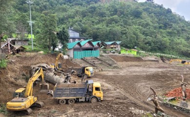 The ongoing expansion works at the main arena of Hornbill Festival at Naga Heritage Village Kisama. The Silver Jubilee celebration of Hornbill Festival will take place in the first week of December 2024. (Morun