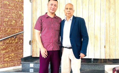 Yamaha Artist Nise Meruno with Dr Sushil Jahanna, Director of Lombard Memorial Mission Hospital at in Udupi, Mangalore. Meruno was invited to perform at the 101 anniversary programme of Lombard Memorial Mission