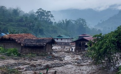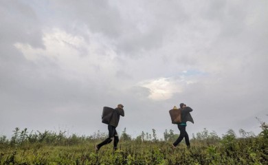 The Journey Itself Is Home… Against a foggy monsoon morning backdrop, two locals from ITC Dan village at the Indo-Myanmar border under Noklak district are seen carrying essential rice supplies on traditional