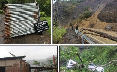 Tree collapsed on building and car near Govt High School, Lower Forest Colony in Kohima on May 28.A tin roof was uprooted following windstorm at BOC area in T Khel Market, Kohima on May 28.Power department work