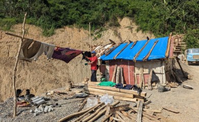 A road construction worker hangs up clothes to dry in the sun outside a makeshift hut on the Mokokchung to Chare road near the Dikhu River. (Morung Photo)