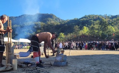 Villagers demonstrate traditional farming tools making during the recent Golden Jubilee celebration of Rünguzumi Youth Association at Rünguzu village in Phek district. (Morung Photo)Mao Chüthuni Festival cel