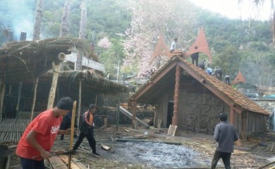 Zhavame villagers renovate Chakhesang Morung at The Naga Heritage Village, Kisama on November 13 for the forthcoming Hornbill Festival 2023. The festival will start from December 1. (Morung Photo)Maj General Ga