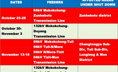 Mokokchung, October 19 (MExN): The office of the Executive Engineer, Transmission Division, Mokokchung has informed that there has been some rescheduling of dates regarding the vegetation clearance for 132kV an