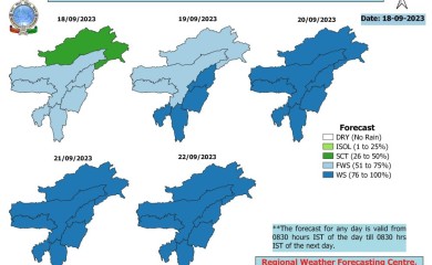 New Delhi, September 18 (IANS): Isolated extremely heavy rainfall is very likely over Gujarat and a fresh spell of rainfall/thunderstorms over east India from Wednesday, the India Meteorological Department said
