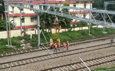 Workers engaged in electrification of railway tracks at Dimapur railway station on August 23. This has been part of the redevelopment and modernisation plan for the 120 year old station which was announced earl