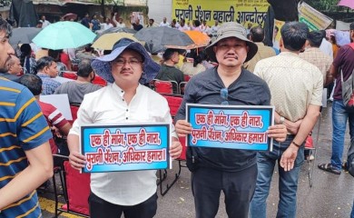 Two members of the Nagaland National Pension System Government Service Employees Forum (NNPSGSEF), Lanusungkum and Avizo Nienu, participated in a dharna for restoration of old age pension scheme at Jantar Manta