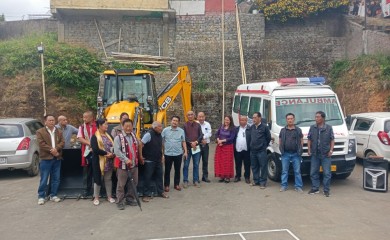 MOKOKCHUNG, MAY 19 (MExN): An excavator (JCB) and an ambulance provisioned by the sitting MLA & Advisor, Tongpang Ozukum of the 24 Angetyongpang A/C was dedicated at his residence on Friday by Chuchu Town B