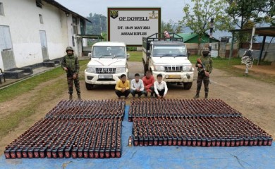 Mon Battalion of 27 Assam Rifles apprehended four individuals smuggling 1836 bottles of IMFL worth Rs 14,68,800 into Mon district of Nagaland. A press release from the 27 AR stated that the individuals were smu