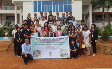 Participants and resource person pose for the lens during the two day state level training program on silkworm rearing for farmers which was held at St Joseph University, Dimapur.