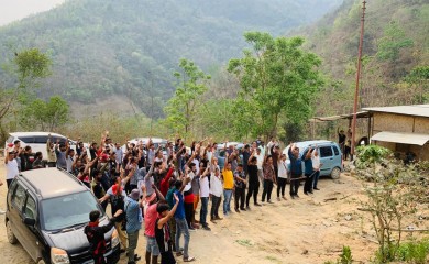 Phek, April 15 (MExN): Hundreds of local contractors today protested at the site office of Stroyproekt LLC OIA JV, the contractor currently executing Kohima-Jessami Package V road construction project in the Ph