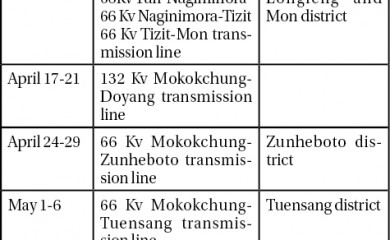 MOKOKCHUNG, APRIL 6 (MExN): The Power Department has informed that there will be total shutdown of power from 8:00 am to 5:00 pm daily from April 10 to May 15 in view of vegetation clearance of 132kV and 66kV T