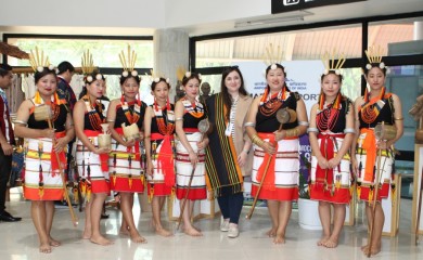 Naga dancers accord traditional welcome to the G20 Summit delegates on their arrival at Dimapur Airport on April 4. (DIPR Photo)