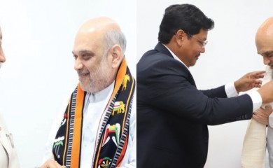New Delhi, March 13 (IANS) Meghalaya Chief Minister Conrad Sangma and Nagaland Chief Minister Neiphiu Rio on Monday met Union Home Minister Amit Shah in Delhi on Monday.