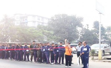 Dimapur, March 12 (MExN): The History Club of Dimapur Government College organised a walkathon in commemoration of Mahatma Gandhi’s Dandi March on March 11 with Dr Aotoshi, Managing Trustee, of the Mahatm