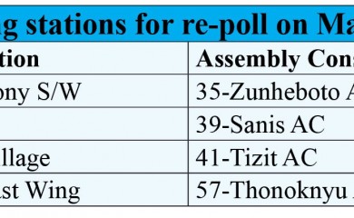 DIMAPUR, FEBRUARY 28 (MExN): The Election Commission of India has ordered re-polls at 4 polling stations spread across four Assembly Constituencies in Nagaland.