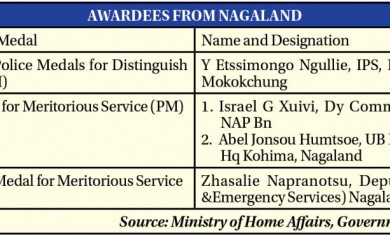 Three police and one fire service personnel from Nagaland have been honoured with various service medals announced on Wednesday by the Union Ministry of Home A