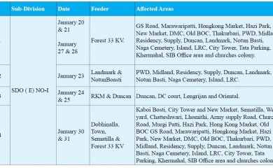 Dimapur, January 18 (MExN): In view of dismantling and shifting of old existing HT and LT lines to newly erected Trunk Line in Dimapur town area, the Power Department will take power shutdown from January 20 to