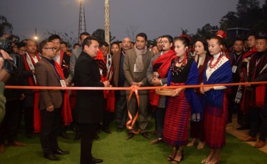 Nagaland Art & Culture and Tourism Advisor Khehovi H Yeputhomi inaugurated Suhumi village amphitheatre through a virtual mode at the conference hall of the Director