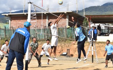 A player from the Changtongya Volleyball Association serves during the final match of the 3rd All Nagaland Open Volleyball Tournament against Chieneinuo Brothers Kiruphema at Indisen Public Ground on December 9