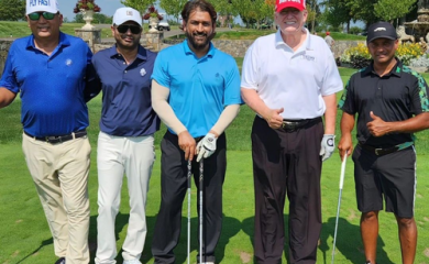 New Delhi, September 8 (IANS): A day after enjoying a tennis match in the ongoing US Open Grand Slam tournament, former India captain Mahendra Singh Dhoni was seen indulging in a round of golf with ex-US Presid