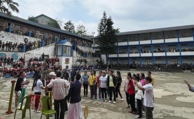 DC Kiphire, John Tsulie Sangtam addressing the students during the inaugural of the Loyola Higher Secondary School 2023 sports week which kicked off on Wednesday.