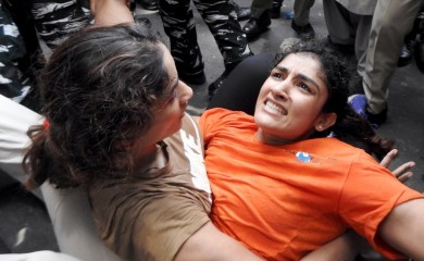 New Delhi, May 28 (IANS) To protest the police assault and detention of wrestlers who were marching towards Parliament for the Mahila Panchayat, a number of people, including representatives from student organi