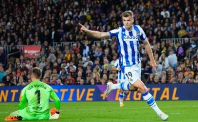 Madrid, May 21 (IANS): Real Sociedad took a big step towards assuring a fourth place in La Liga when they beat this season's champions FC Barcelona 2-1 in the Camp Nou Stadium on Saturday night.
