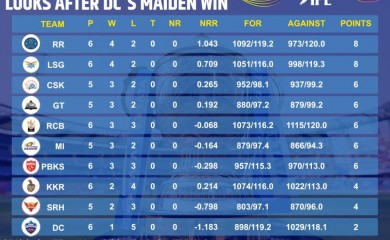 New Delhi, April 21 (IANS) Playing his first match of the season, the veteran pacer Ishant Sharma claimed 2-19 in four overs against Kolkata Knight Riders at the Arun Jaitley Stadium here.