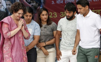 New Delhi, April 29 (IANS) Congress General Secretary Priyanka Gandhi Vadra on Saturday visited the wrestlers protesting against Wrestling Federation of India (WFI) chief & BJP MP Brij Bhushan Sharan Singh