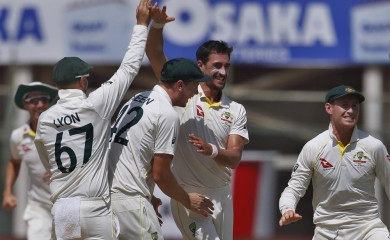 Karachi, March 14 (AP): Pakistan collapsed to 100-7 at tea against Mitchell Starc's searing pace in reply to Australia's mammoth 556-9 declared on the third day of the second test on Monday.