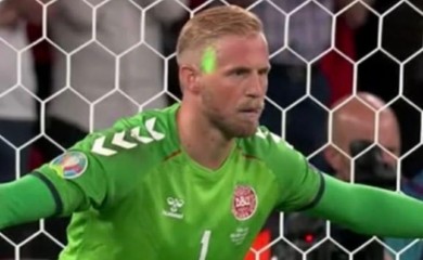 London, July 8 (IANS): Fans were left seething after a laser beam was pointed at the face and eyes of Denmark goalkeeper Kasper Schmeichel while he was trying to save a penalty from England striker Harry Kane i